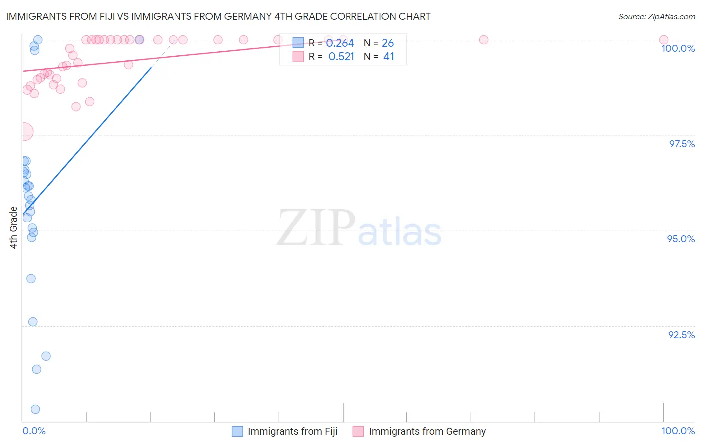 Immigrants from Fiji vs Immigrants from Germany 4th Grade Correlation Chart