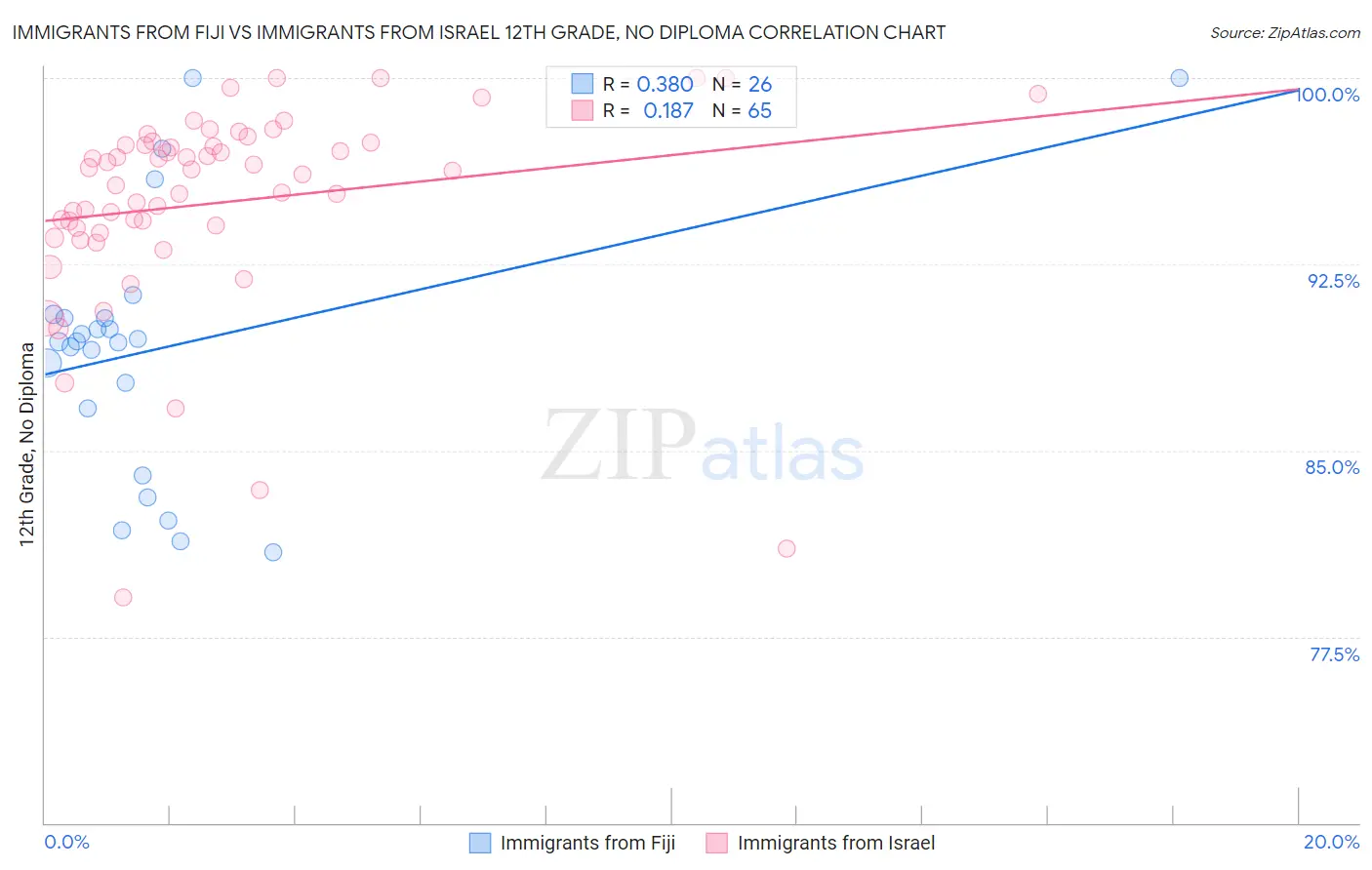 Immigrants from Fiji vs Immigrants from Israel 12th Grade, No Diploma Correlation Chart