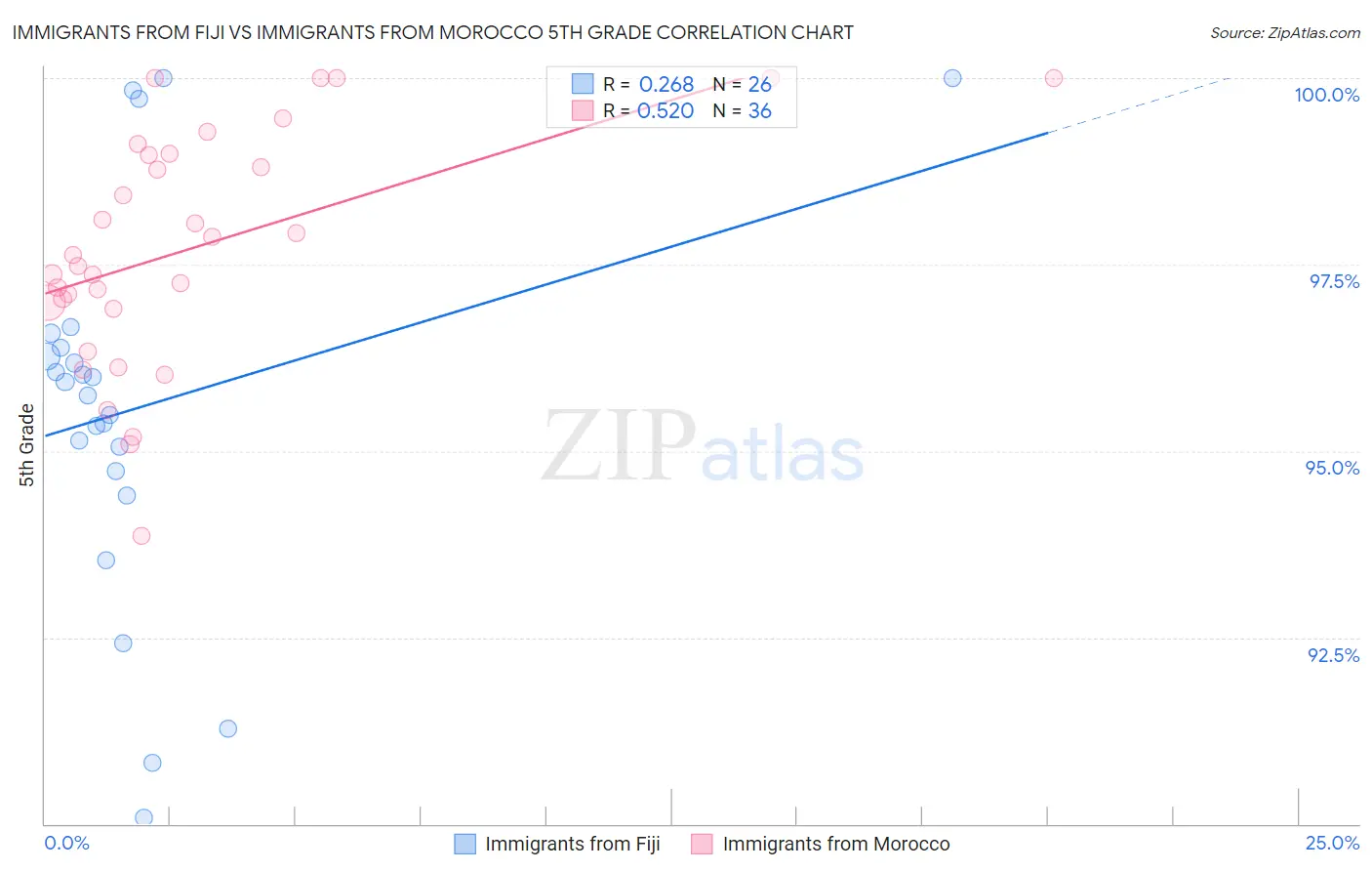 Immigrants from Fiji vs Immigrants from Morocco 5th Grade Correlation Chart
