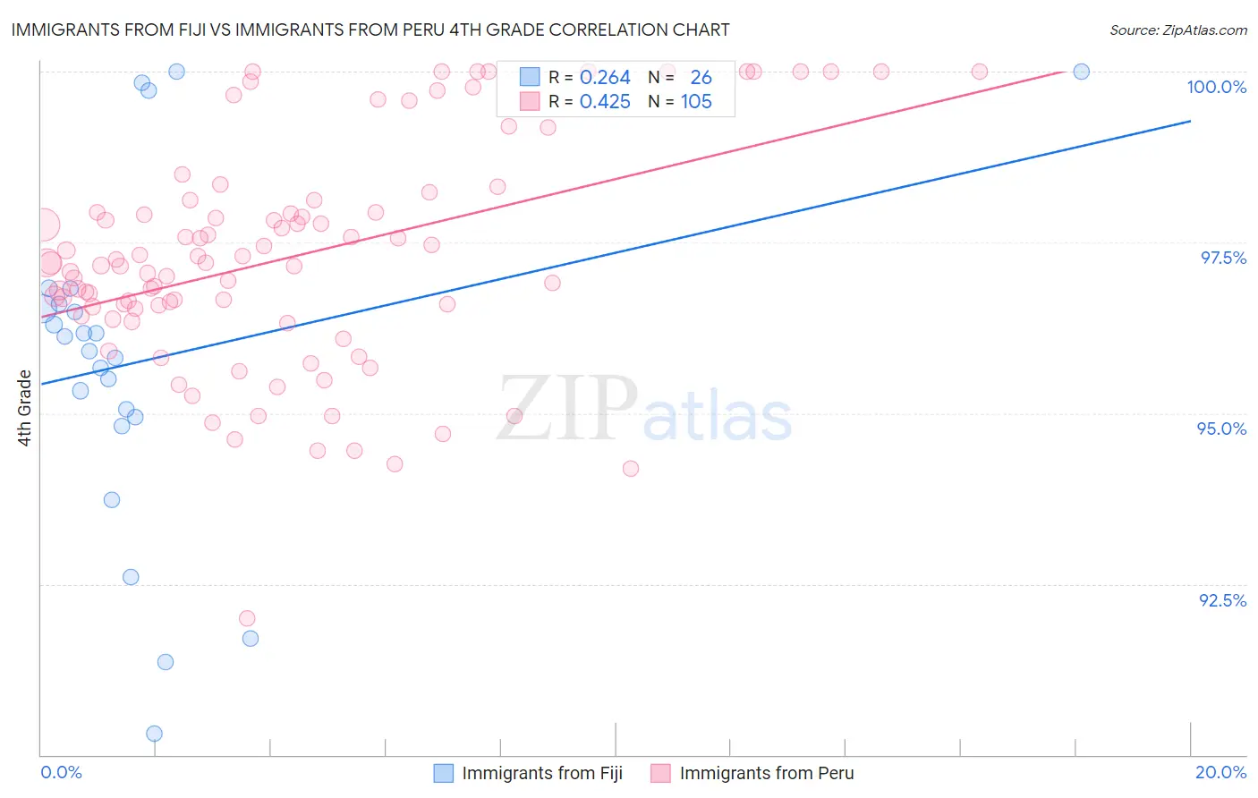 Immigrants from Fiji vs Immigrants from Peru 4th Grade Correlation Chart