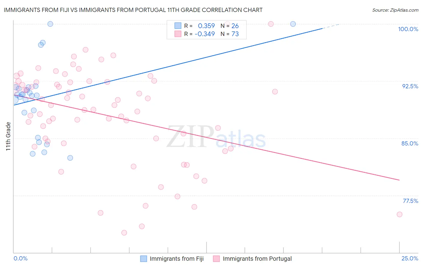 Immigrants from Fiji vs Immigrants from Portugal 11th Grade Correlation Chart