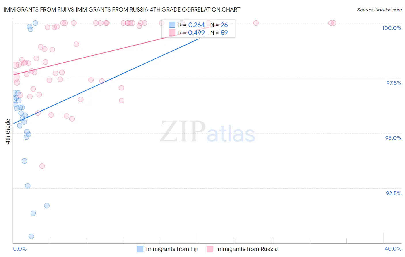 Immigrants from Fiji vs Immigrants from Russia 4th Grade Correlation Chart