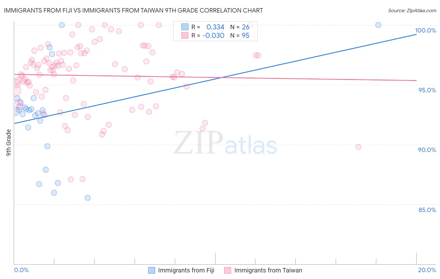 Immigrants from Fiji vs Immigrants from Taiwan 9th Grade Correlation Chart