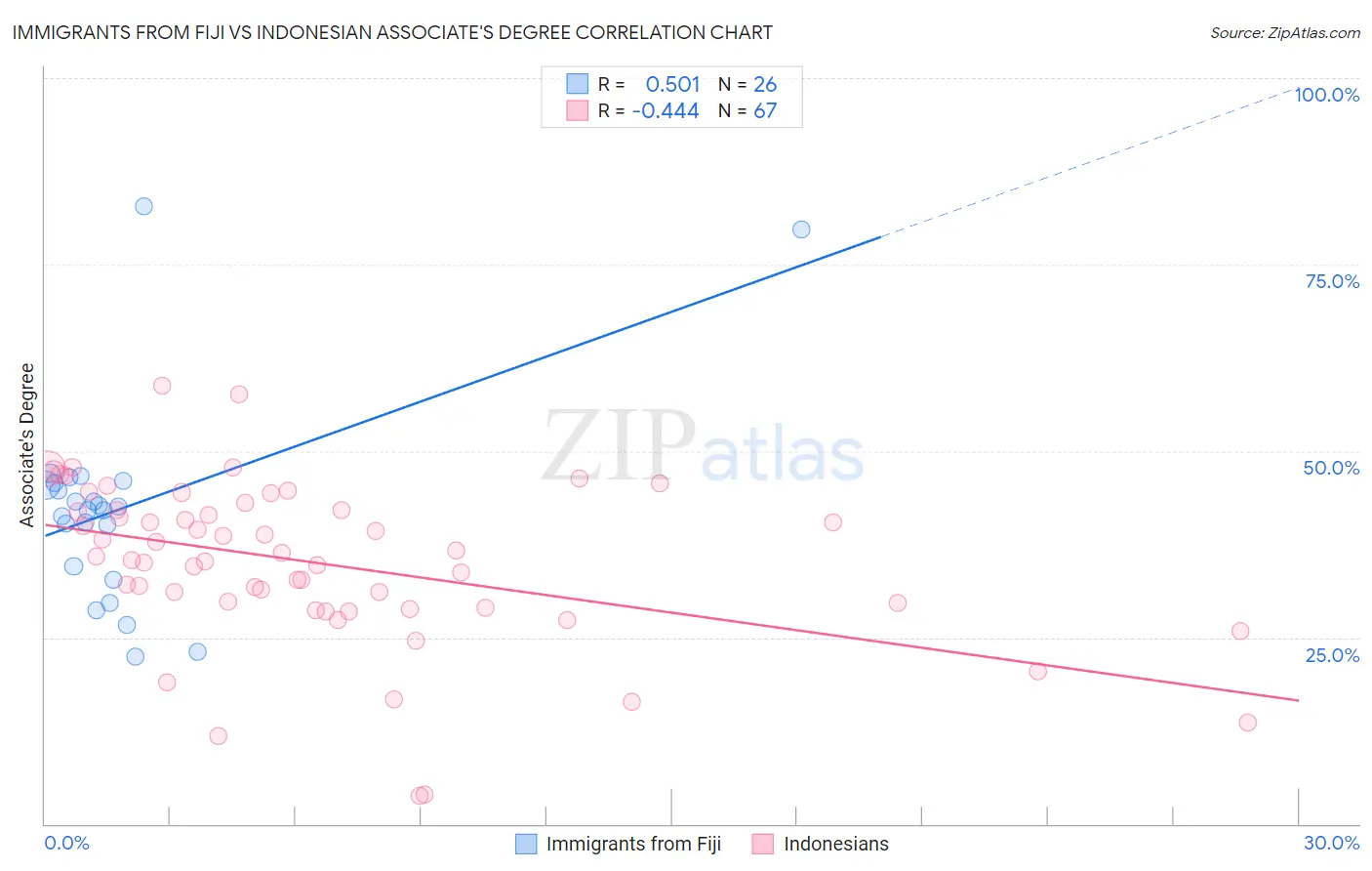 Immigrants from Fiji vs Indonesian Associate's Degree Correlation Chart