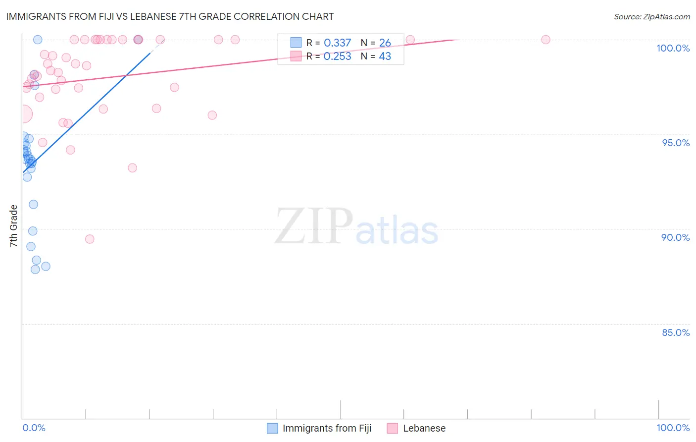 Immigrants from Fiji vs Lebanese 7th Grade Correlation Chart