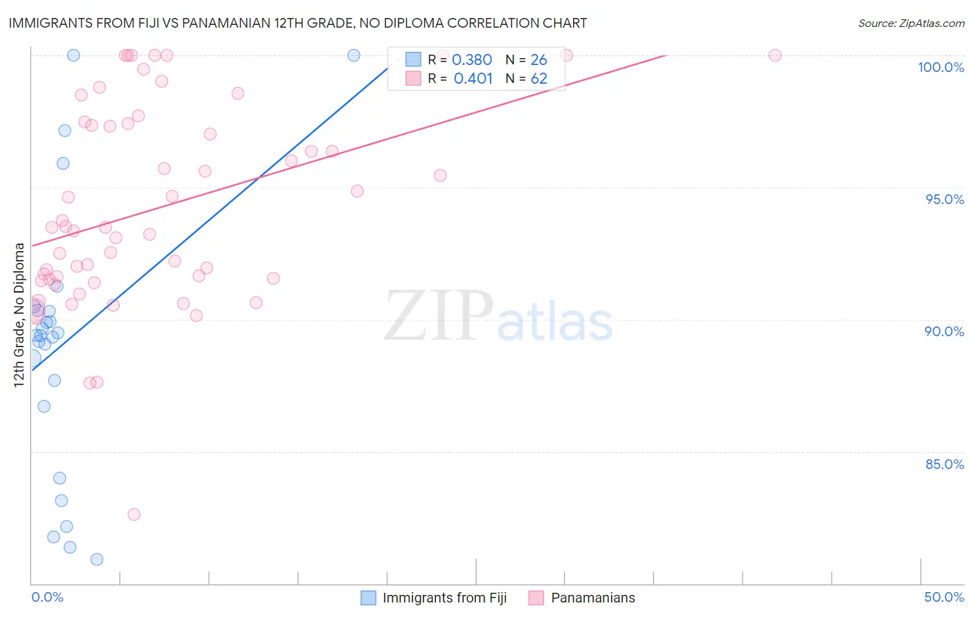 Immigrants from Fiji vs Panamanian 12th Grade, No Diploma Correlation Chart