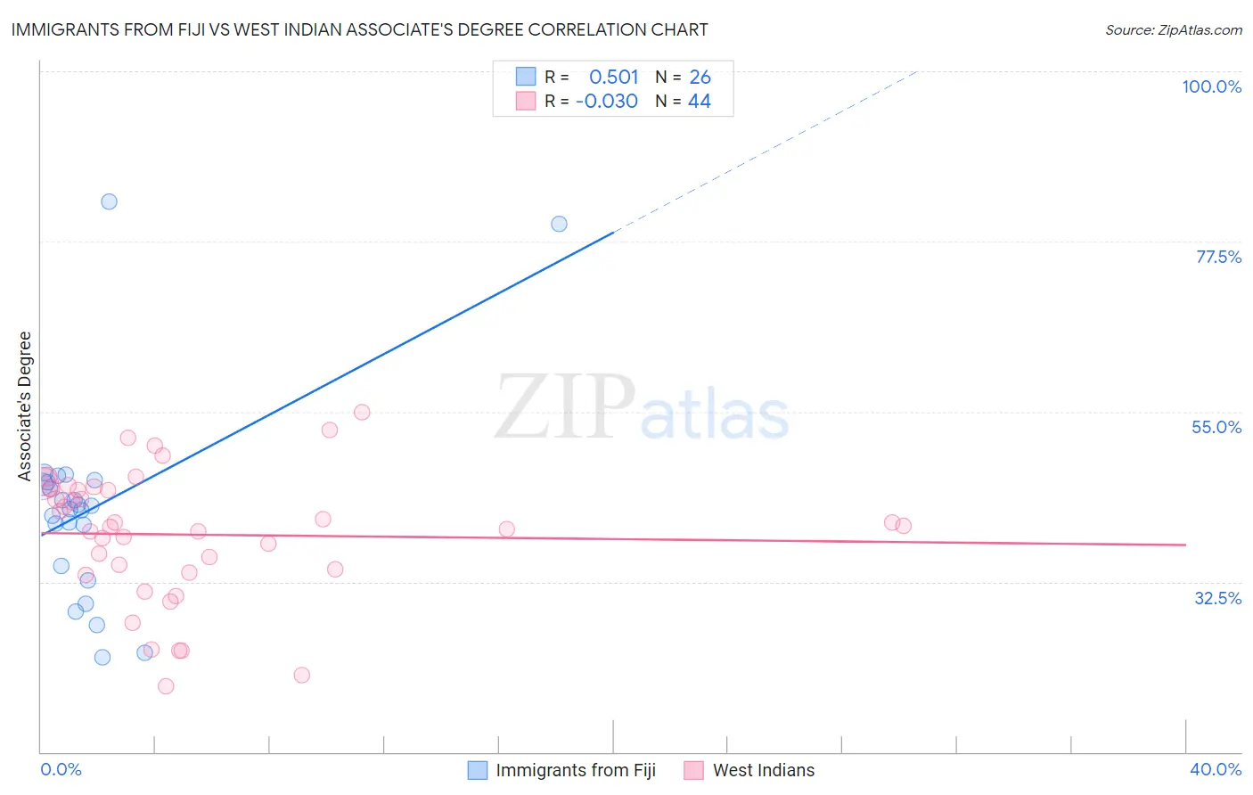 Immigrants from Fiji vs West Indian Associate's Degree Correlation Chart
