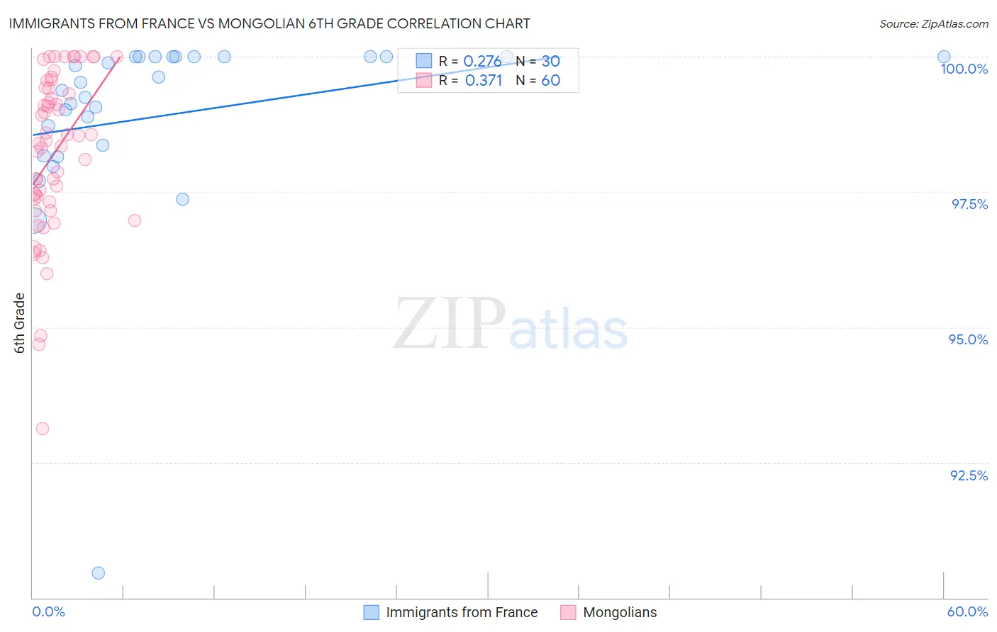 Immigrants from France vs Mongolian 6th Grade Correlation Chart