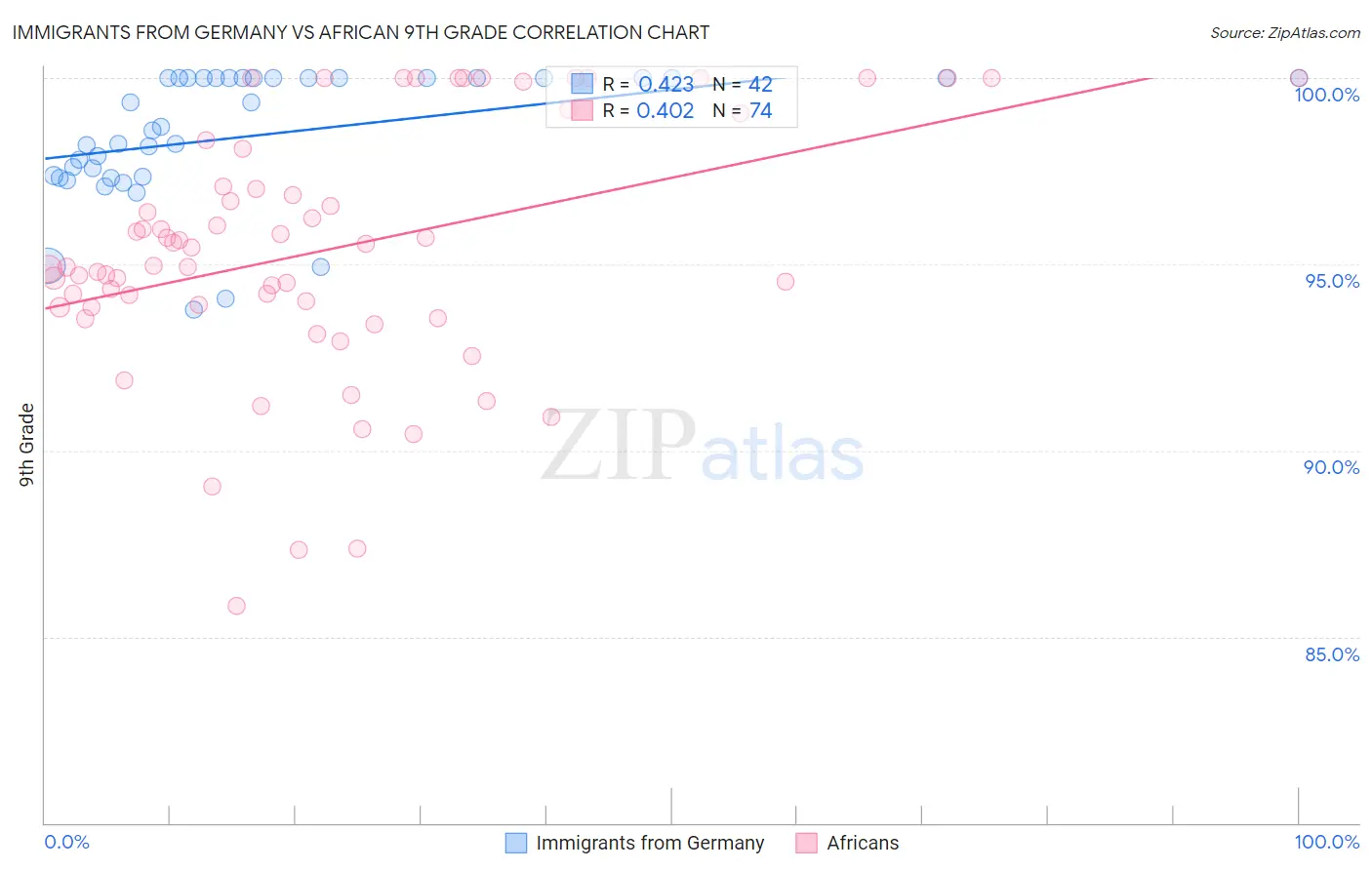 Immigrants from Germany vs African 9th Grade Correlation Chart