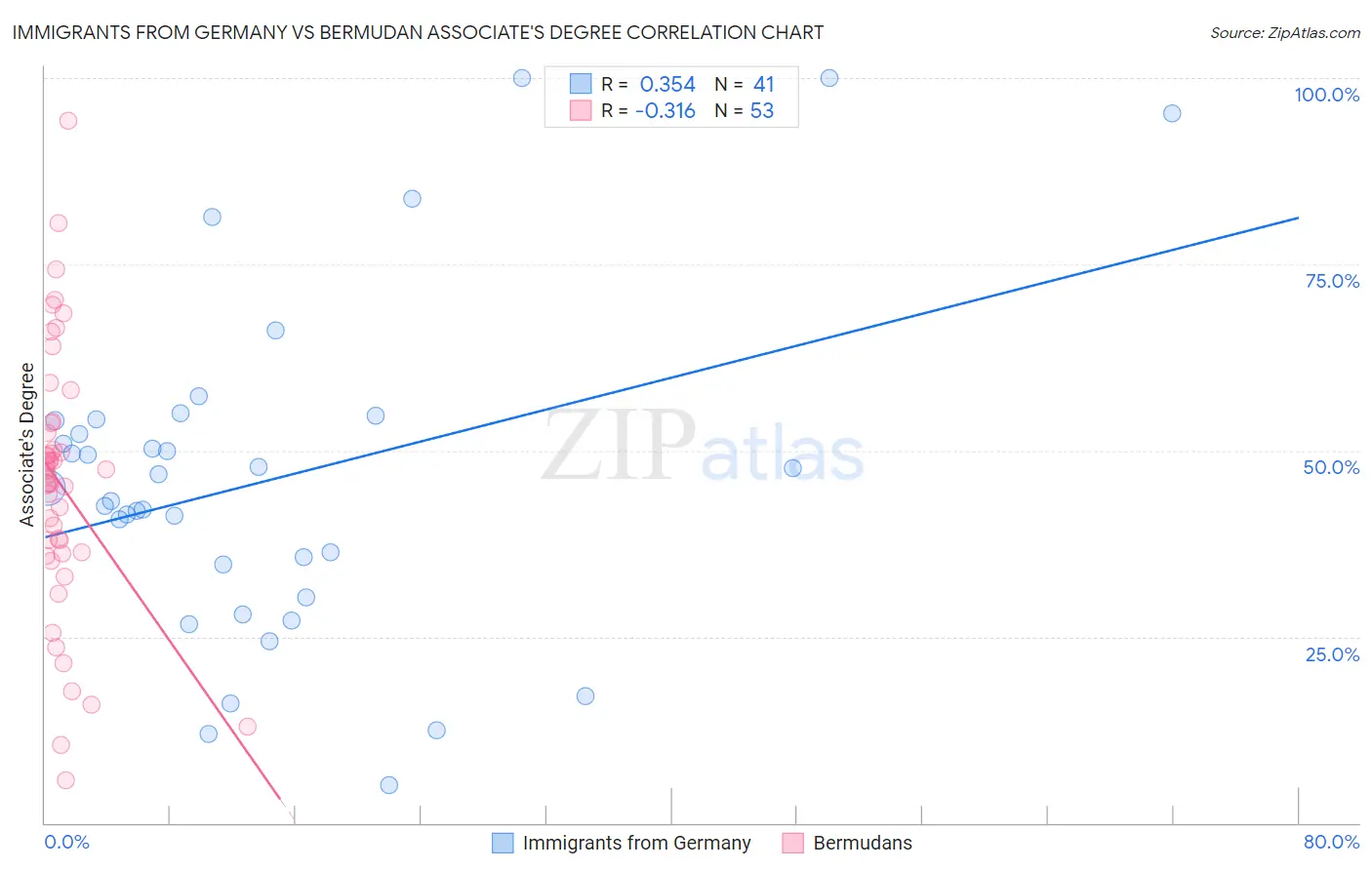 Immigrants from Germany vs Bermudan Associate's Degree Correlation Chart