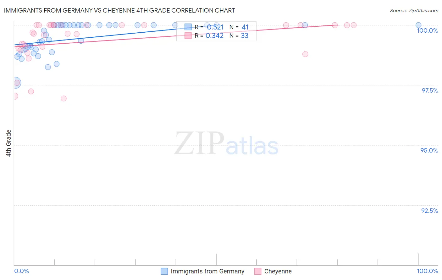 Immigrants from Germany vs Cheyenne 4th Grade Correlation Chart