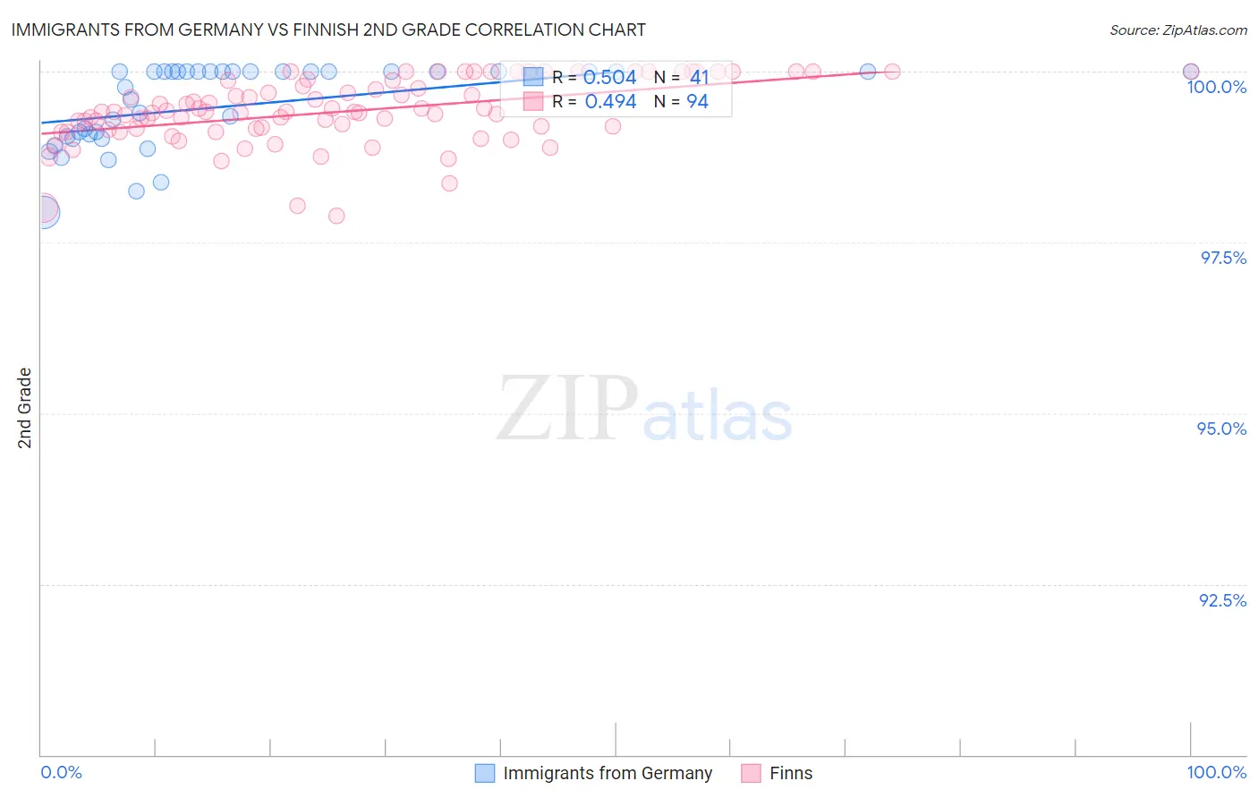 Immigrants from Germany vs Finnish 2nd Grade Correlation Chart