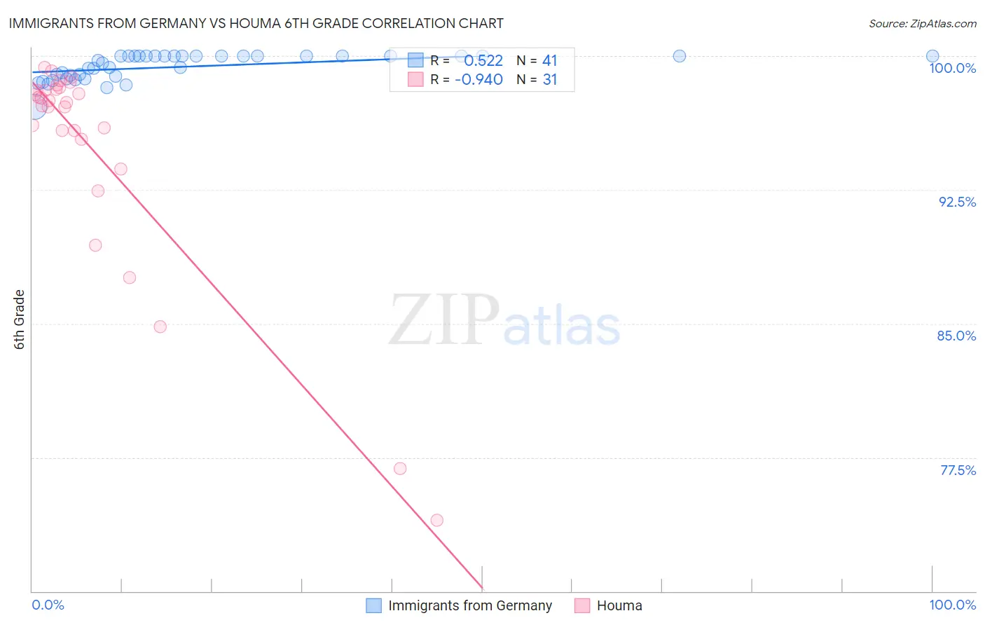 Immigrants from Germany vs Houma 6th Grade Correlation Chart