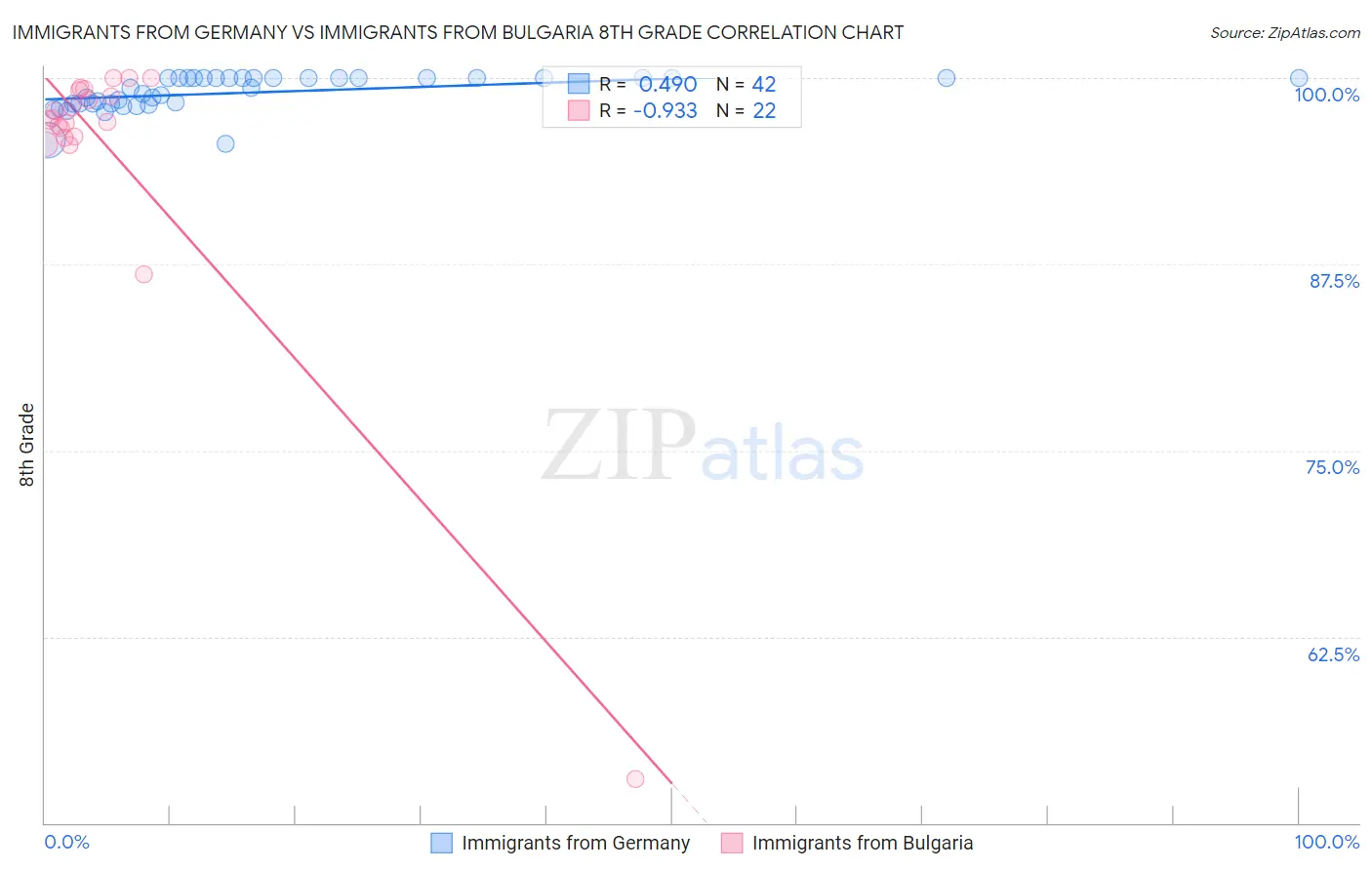Immigrants from Germany vs Immigrants from Bulgaria 8th Grade Correlation Chart