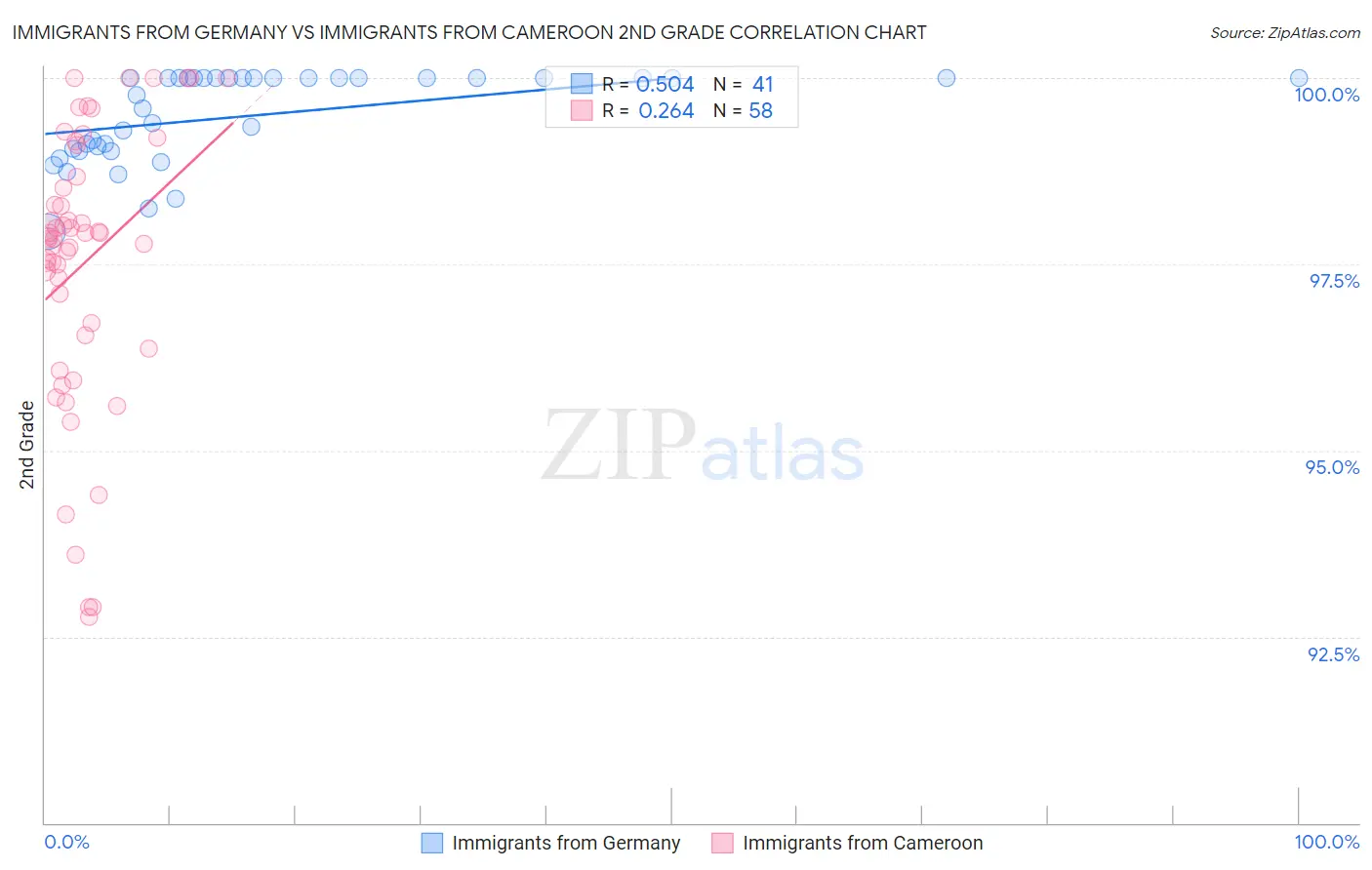Immigrants from Germany vs Immigrants from Cameroon 2nd Grade Correlation Chart