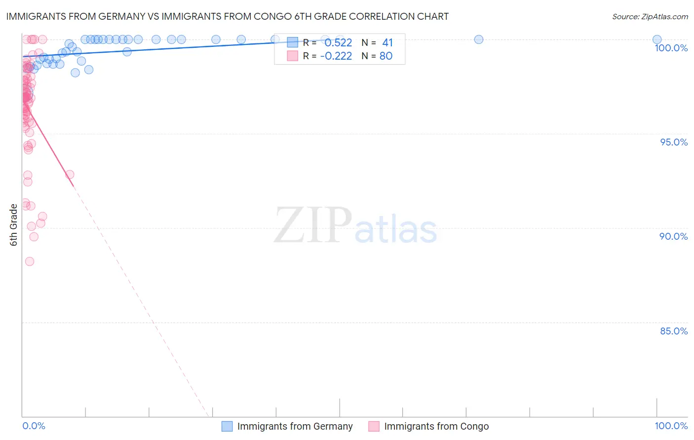 Immigrants from Germany vs Immigrants from Congo 6th Grade Correlation Chart