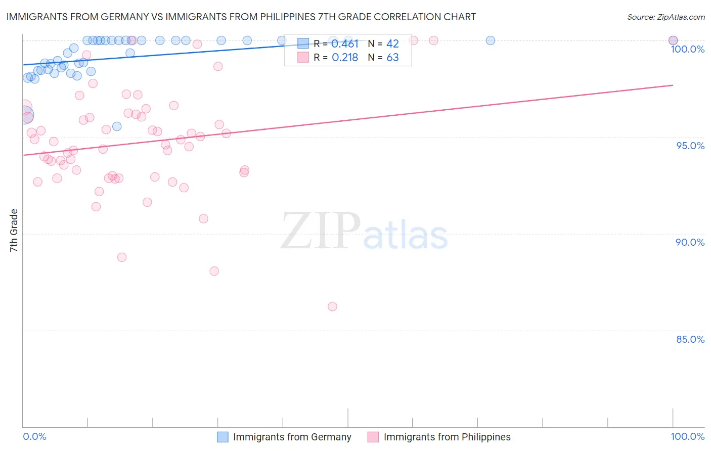 Immigrants from Germany vs Immigrants from Philippines 7th Grade Correlation Chart
