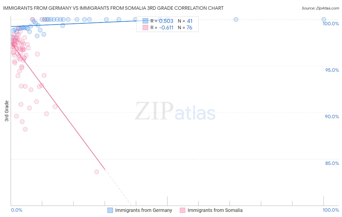 Immigrants from Germany vs Immigrants from Somalia 3rd Grade Correlation Chart