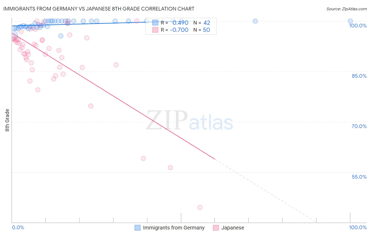 Immigrants from Germany vs Japanese 8th Grade Correlation Chart