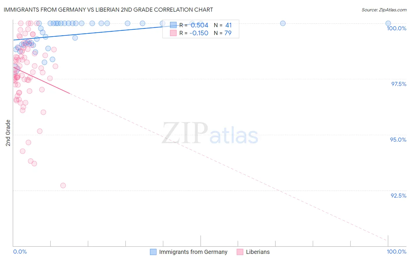 Immigrants from Germany vs Liberian 2nd Grade Correlation Chart