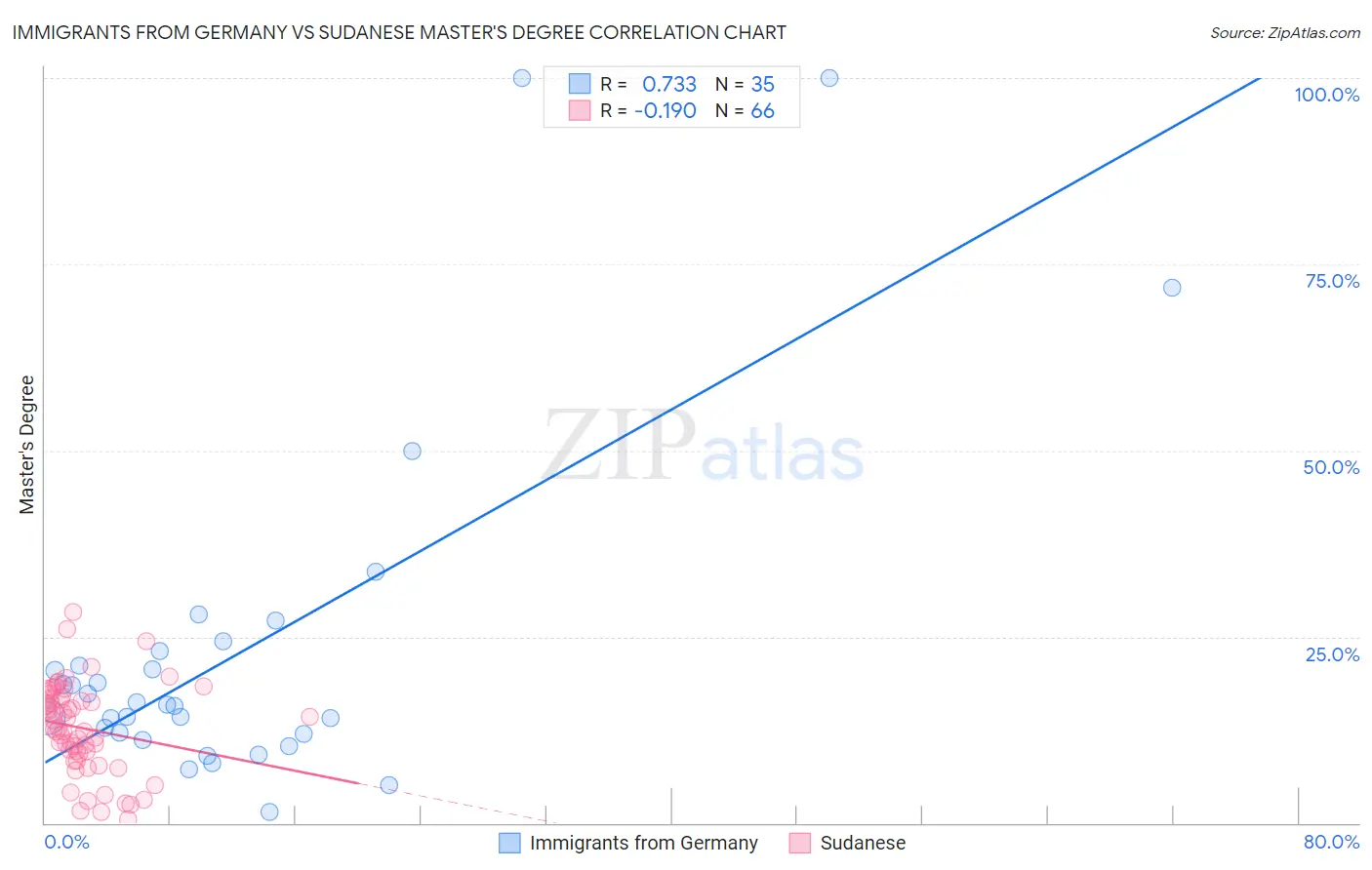 Immigrants from Germany vs Sudanese Master's Degree Correlation Chart
