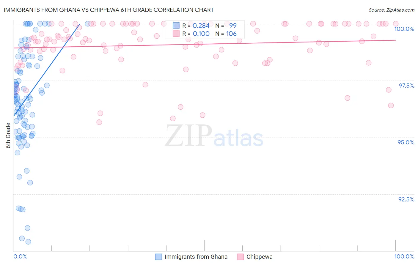 Immigrants from Ghana vs Chippewa 6th Grade Correlation Chart