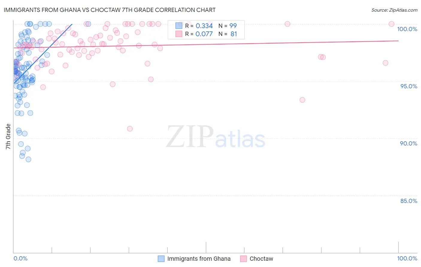 Immigrants from Ghana vs Choctaw 7th Grade Correlation Chart