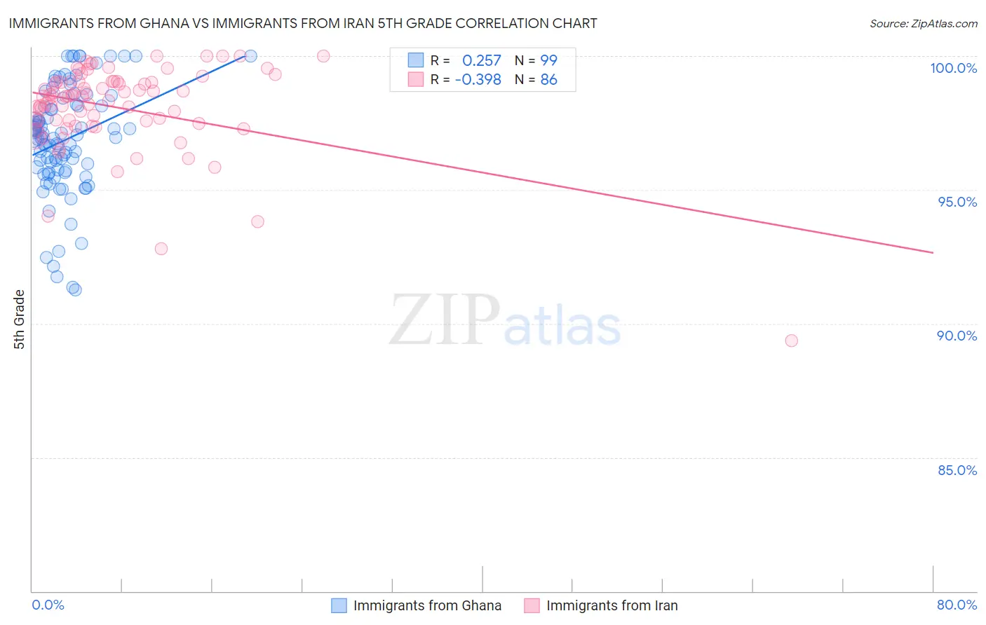 Immigrants from Ghana vs Immigrants from Iran 5th Grade Correlation Chart