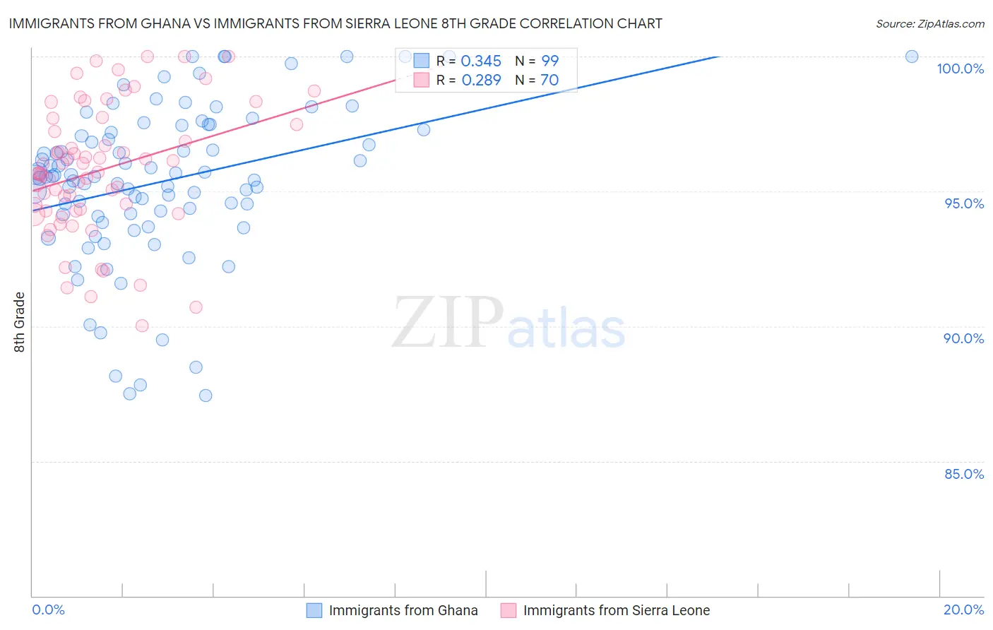 Immigrants from Ghana vs Immigrants from Sierra Leone 8th Grade Correlation Chart