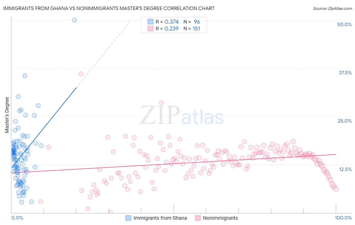 Immigrants from Ghana vs Nonimmigrants Master's Degree Correlation Chart