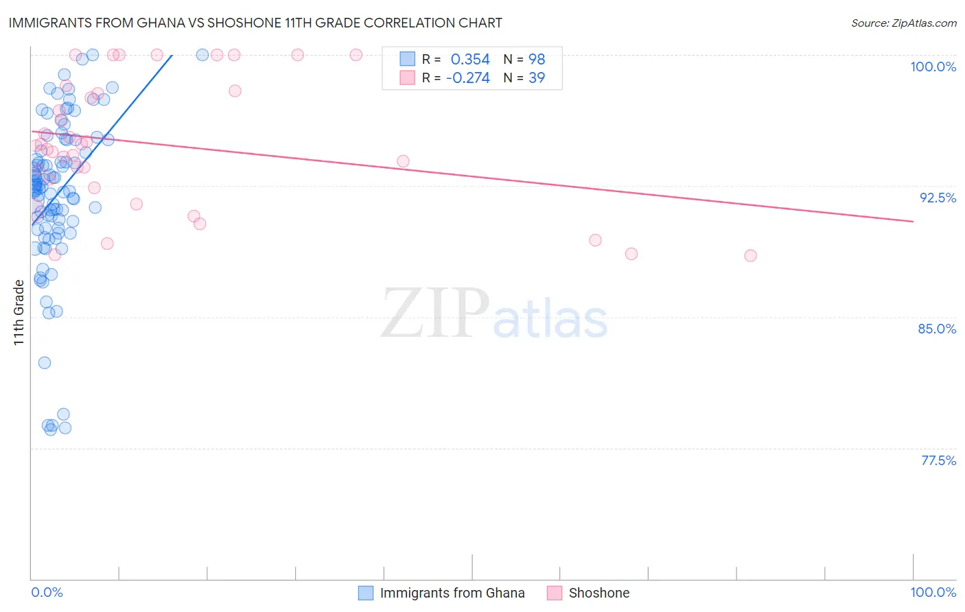 Immigrants from Ghana vs Shoshone 11th Grade Correlation Chart