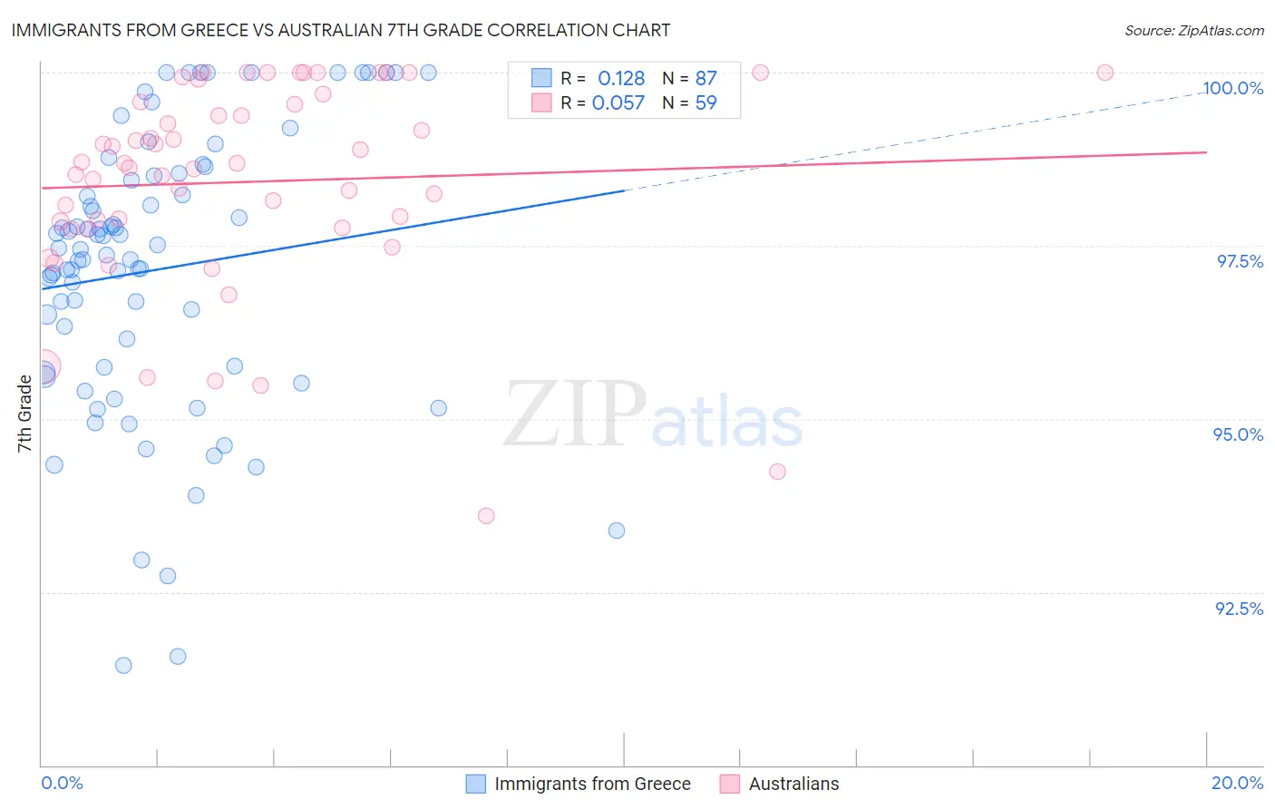 Immigrants from Greece vs Australian 7th Grade Correlation Chart