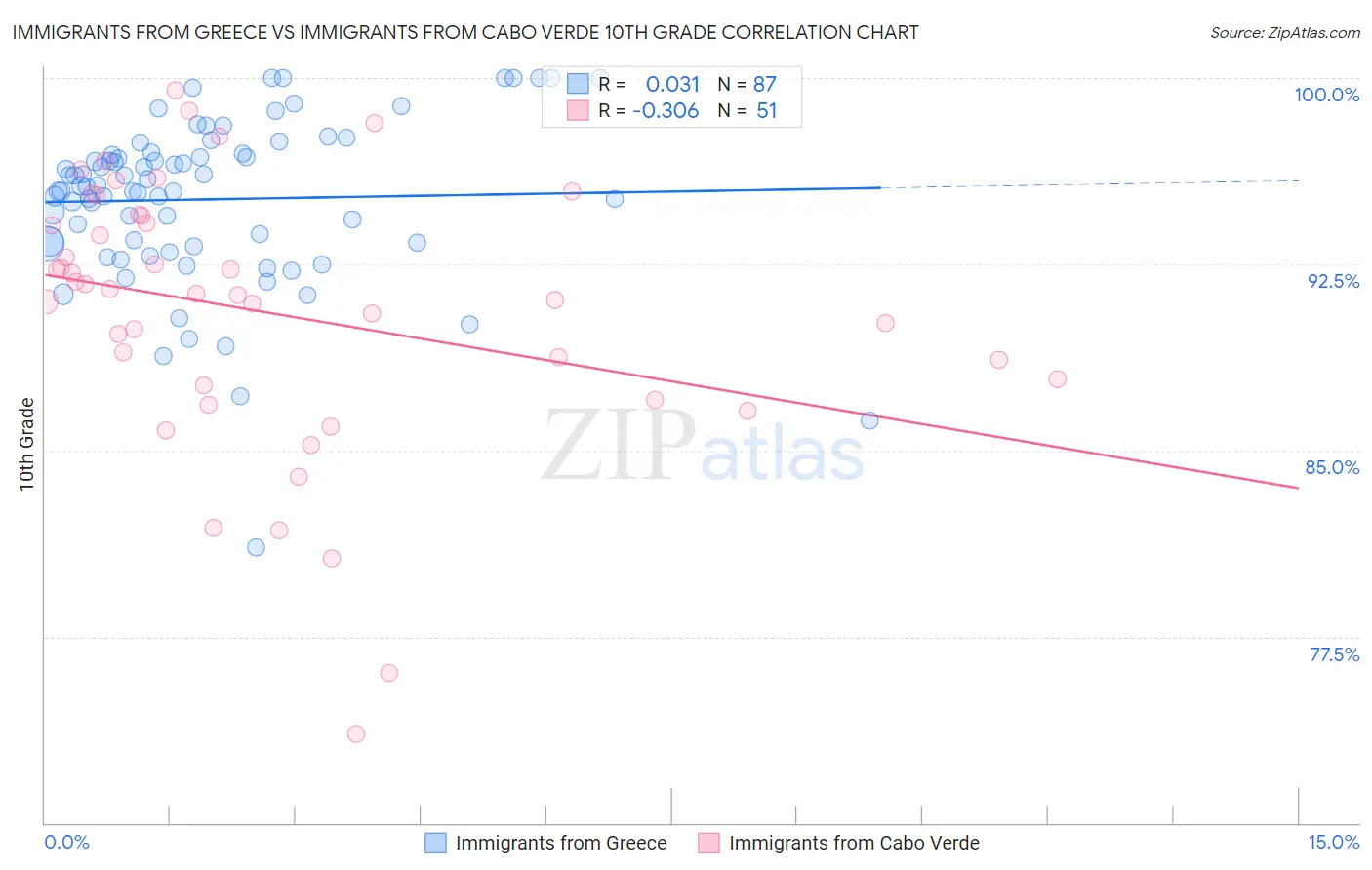 Immigrants from Greece vs Immigrants from Cabo Verde 10th Grade Correlation Chart