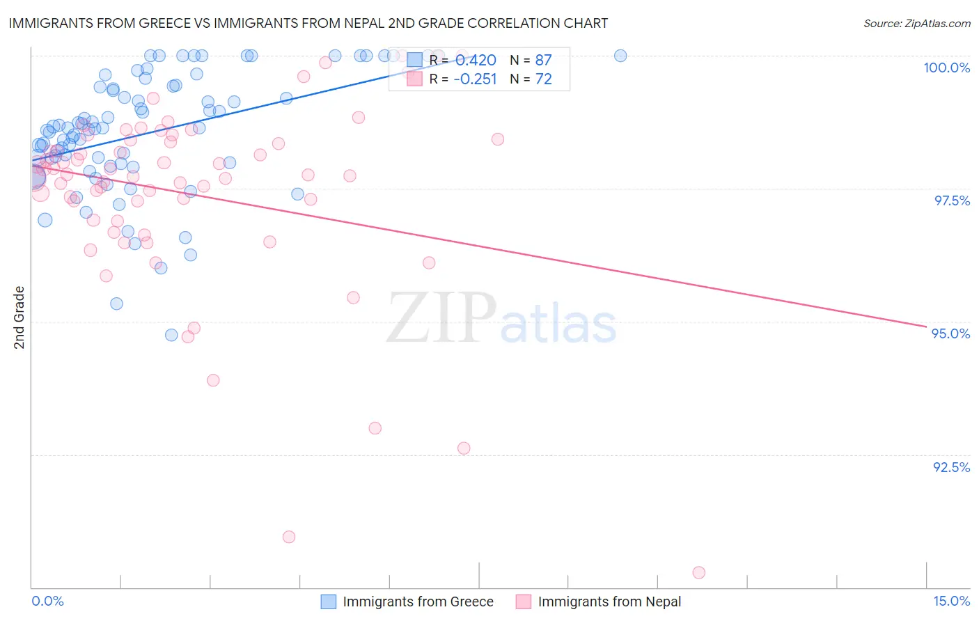 Immigrants from Greece vs Immigrants from Nepal 2nd Grade Correlation Chart