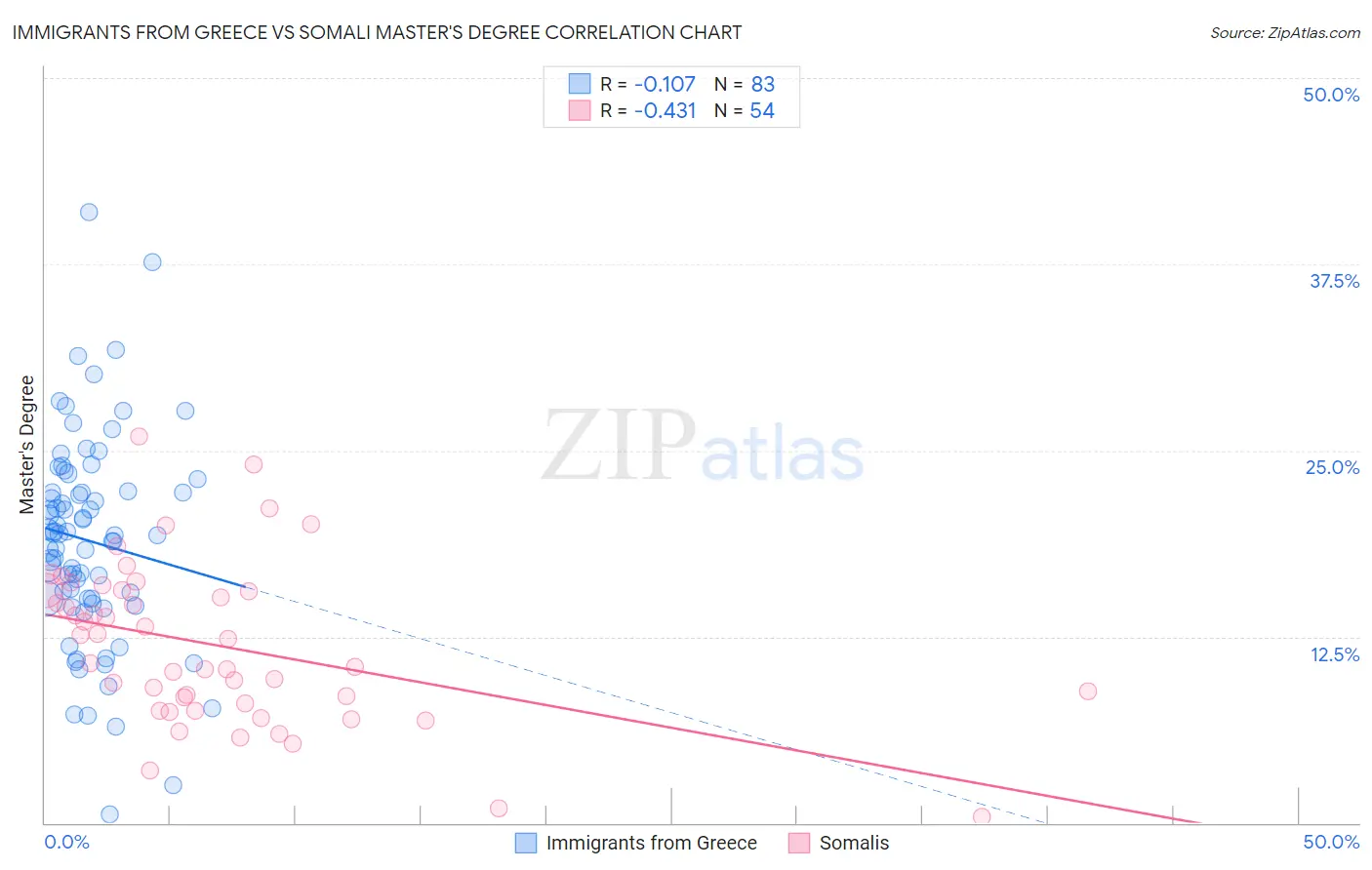 Immigrants from Greece vs Somali Master's Degree Correlation Chart