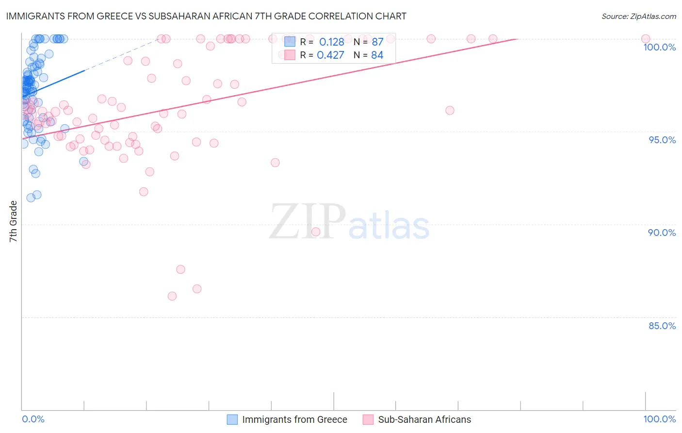 Immigrants from Greece vs Subsaharan African 7th Grade