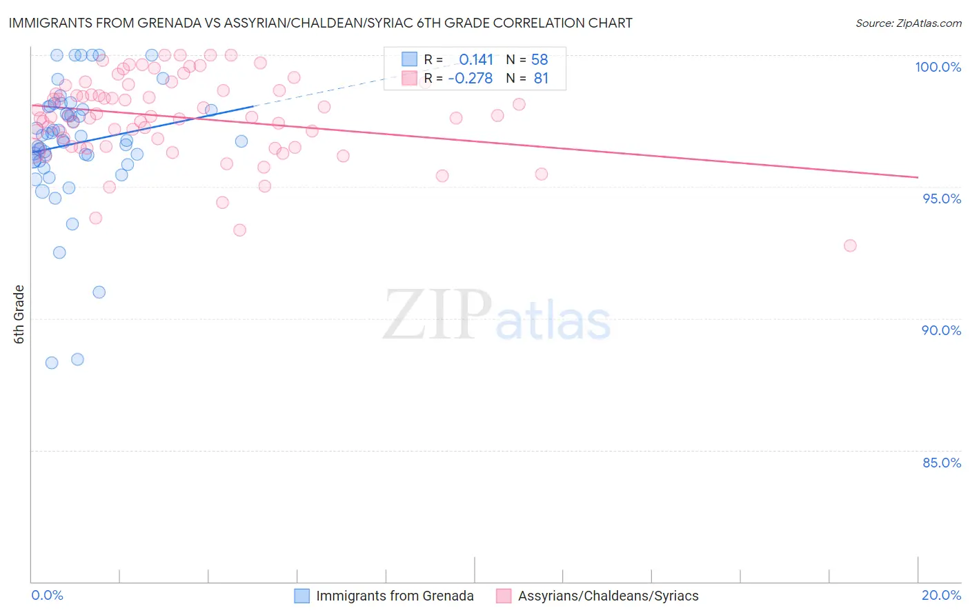 Immigrants from Grenada vs Assyrian/Chaldean/Syriac 6th Grade Correlation Chart