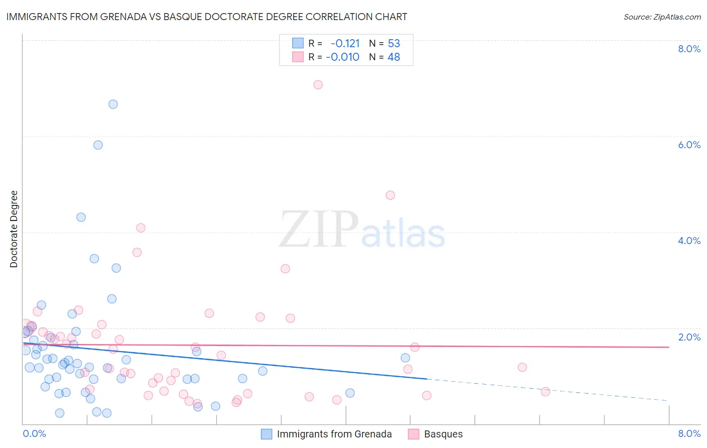 Immigrants from Grenada vs Basque Doctorate Degree Correlation Chart