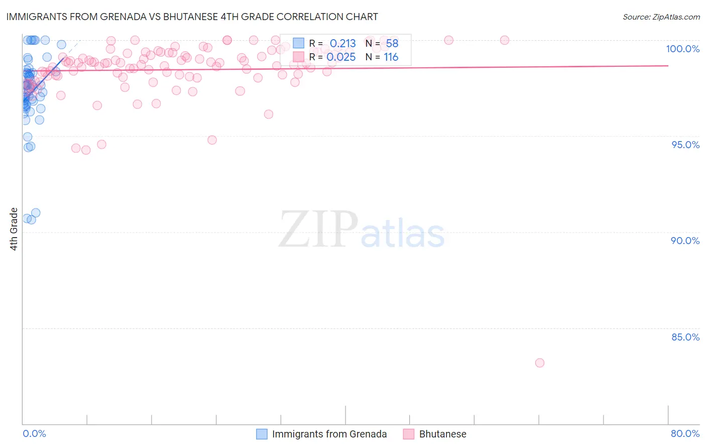 Immigrants from Grenada vs Bhutanese 4th Grade Correlation Chart