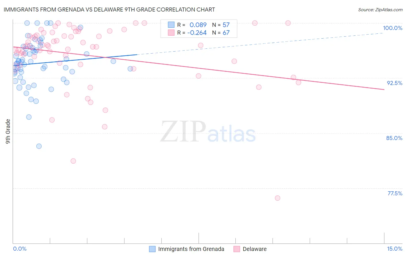 Immigrants from Grenada vs Delaware 9th Grade Correlation Chart
