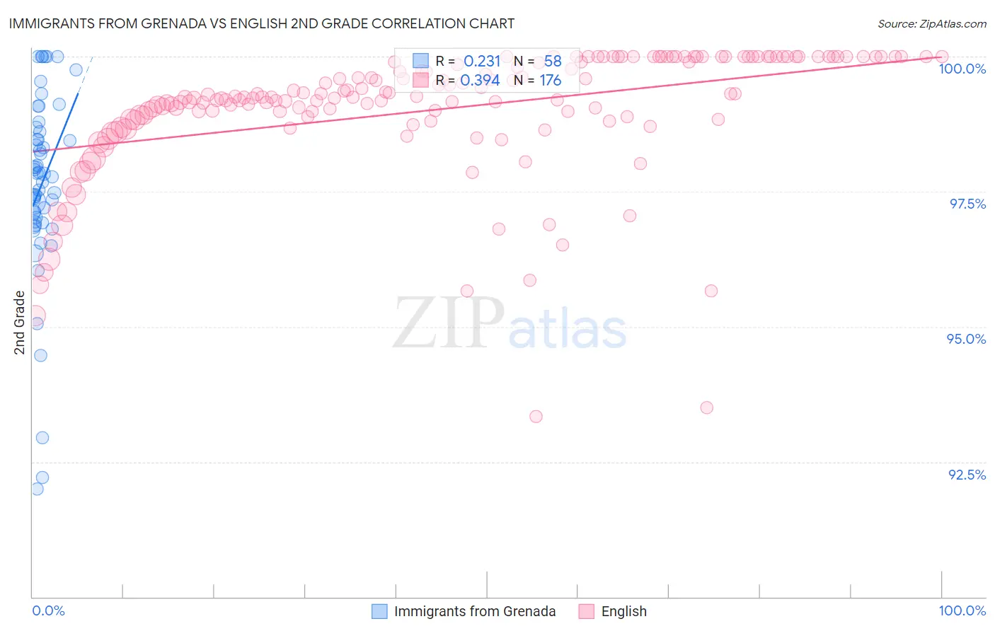 Immigrants from Grenada vs English 2nd Grade Correlation Chart