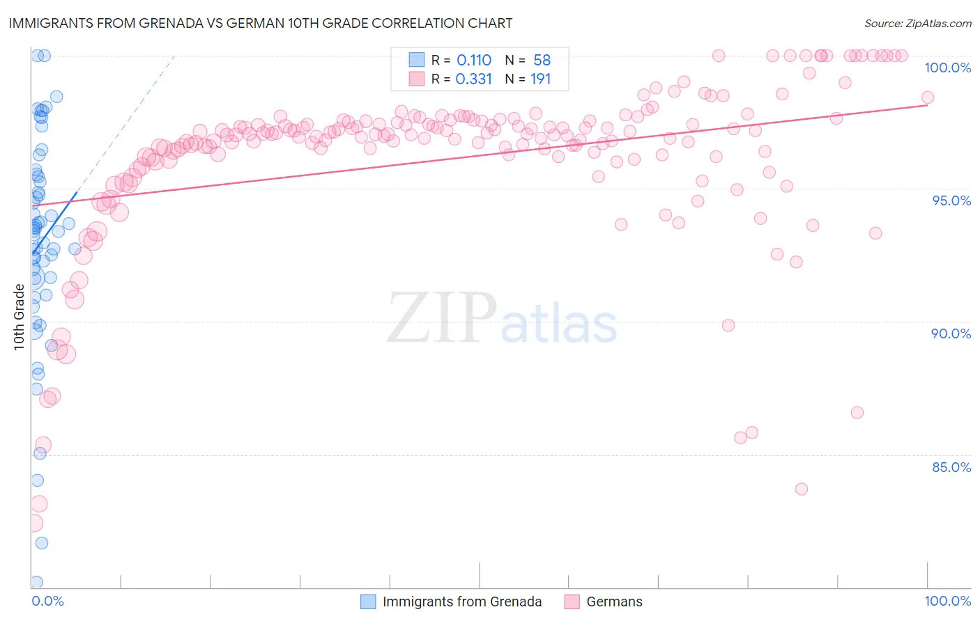 Immigrants from Grenada vs German 10th Grade Correlation Chart