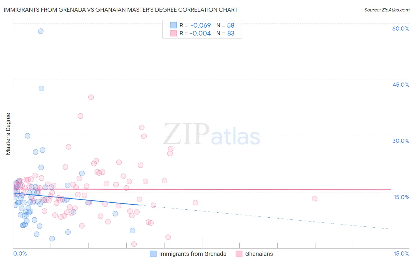 Immigrants from Grenada vs Ghanaian Master's Degree Correlation Chart