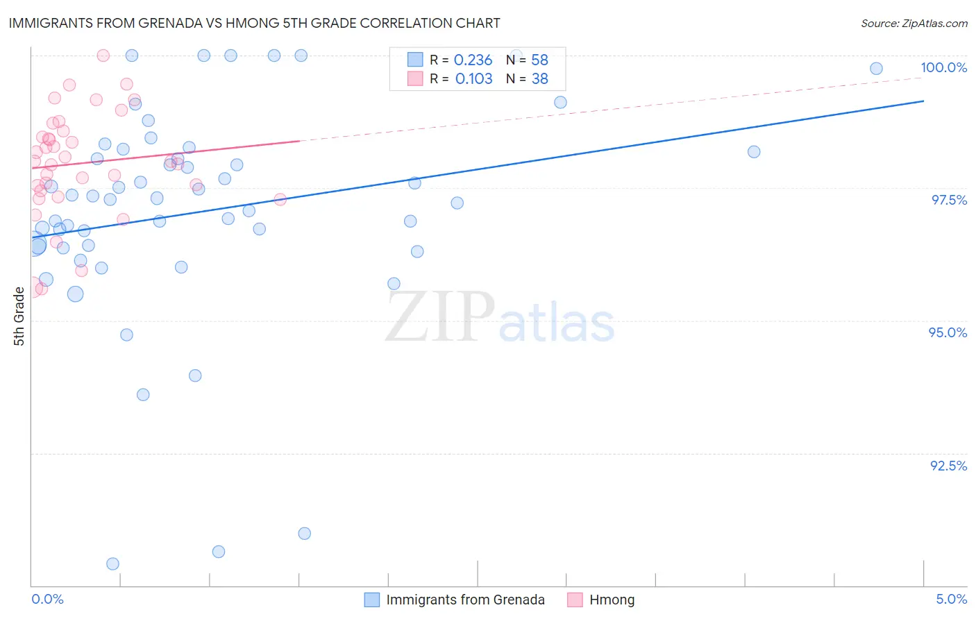 Immigrants from Grenada vs Hmong 5th Grade Correlation Chart