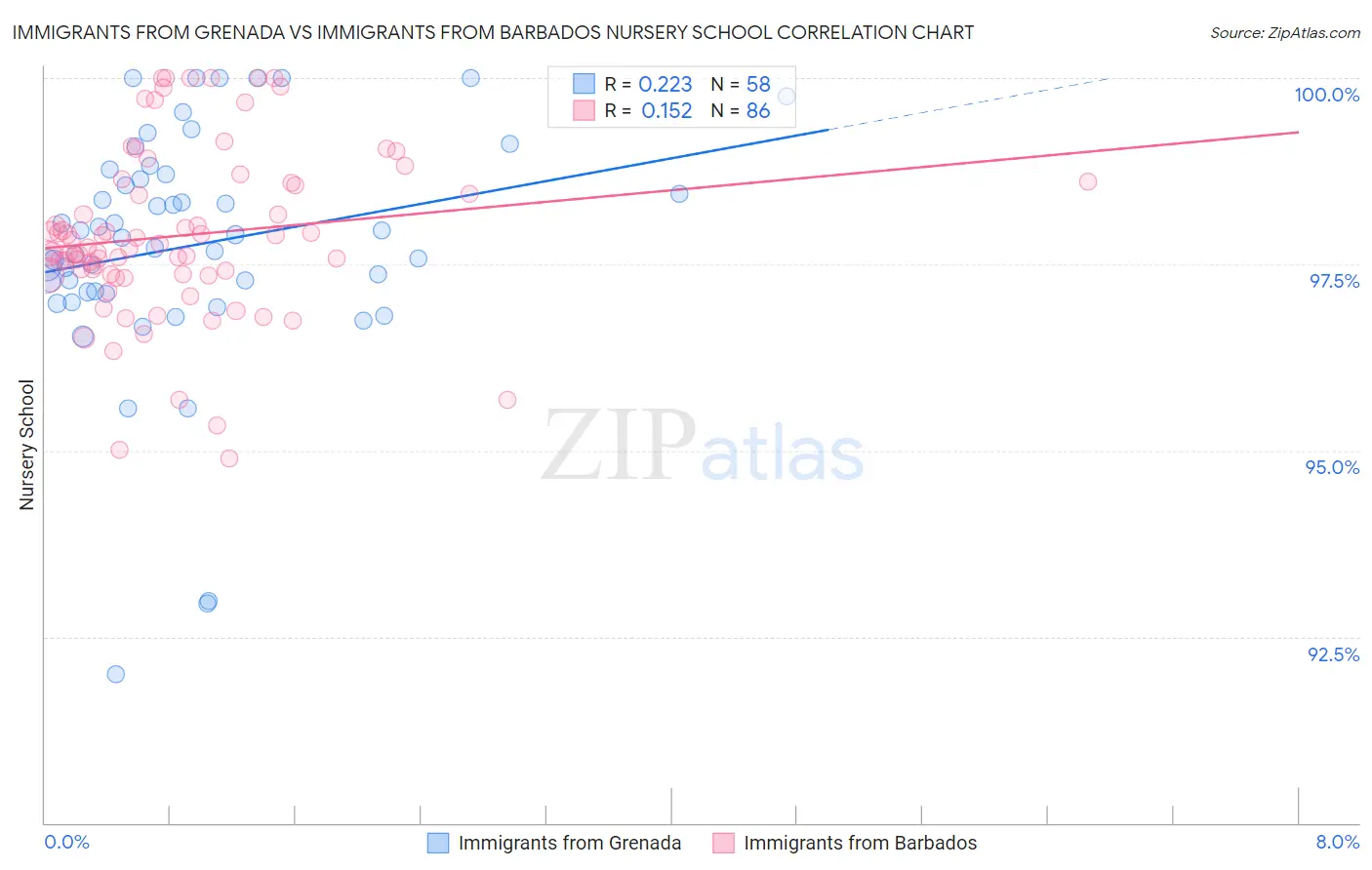 Immigrants from Grenada vs Immigrants from Barbados Nursery School Correlation Chart