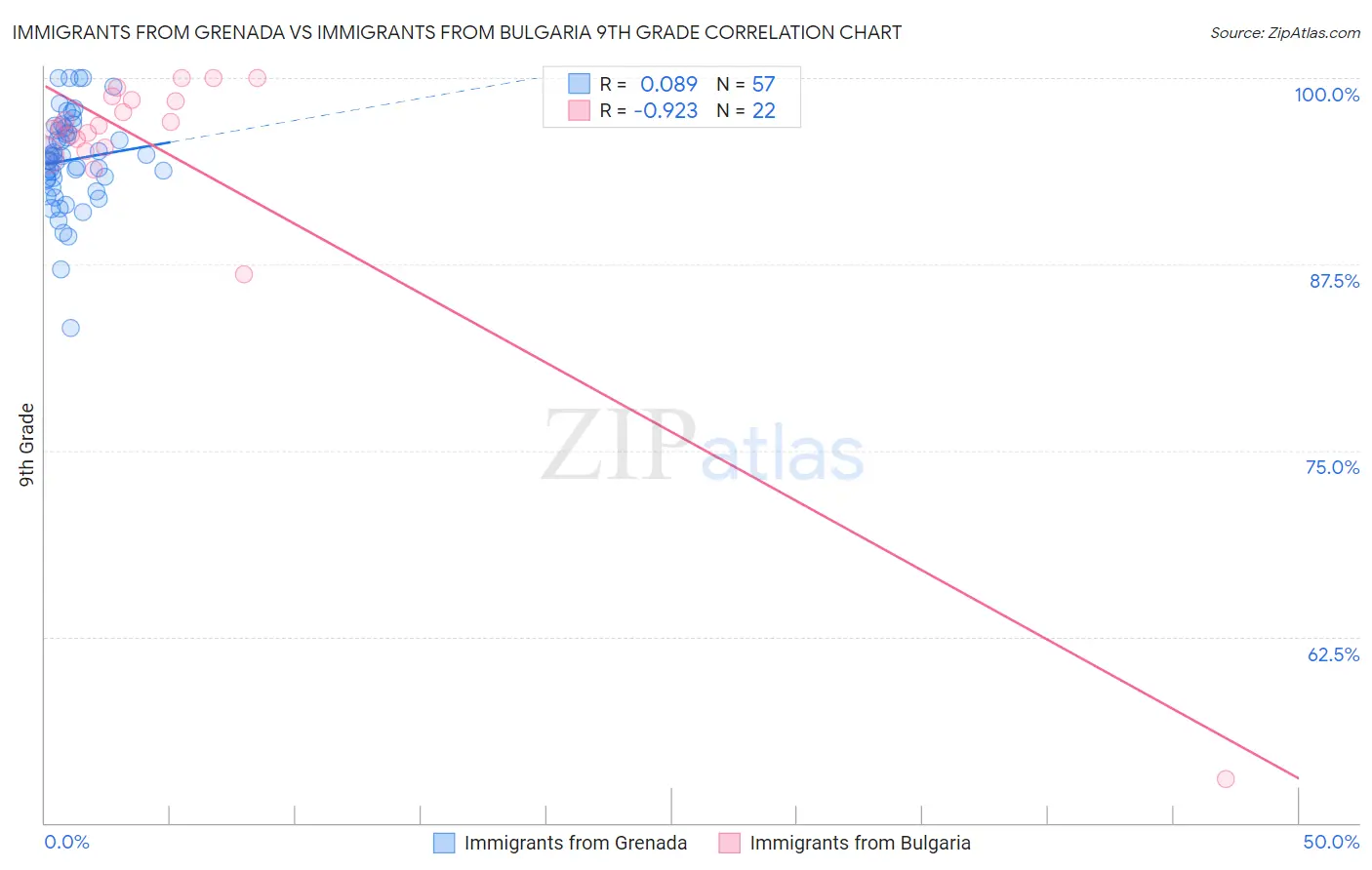 Immigrants from Grenada vs Immigrants from Bulgaria 9th Grade Correlation Chart