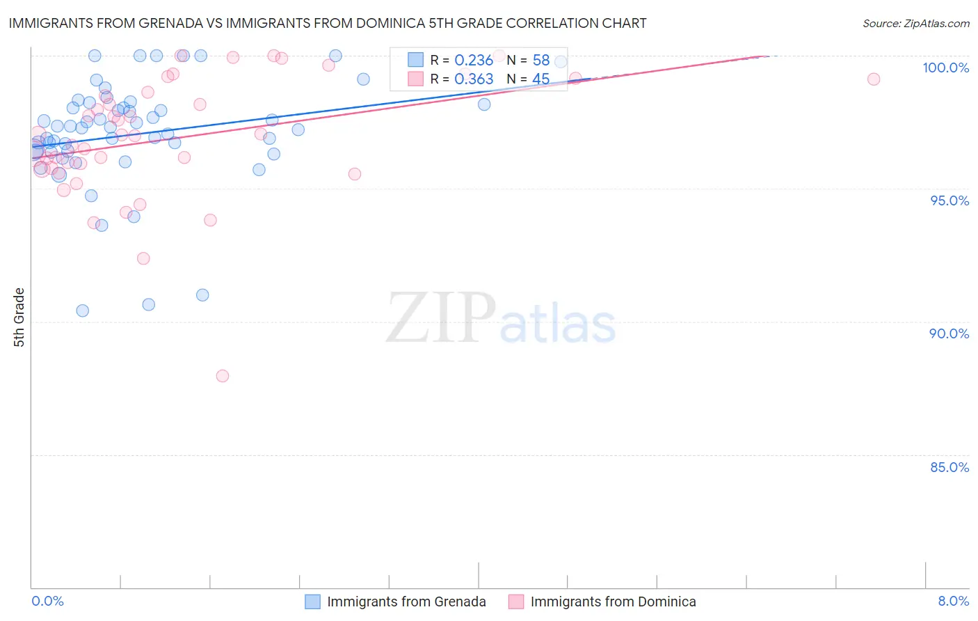Immigrants from Grenada vs Immigrants from Dominica 5th Grade Correlation Chart