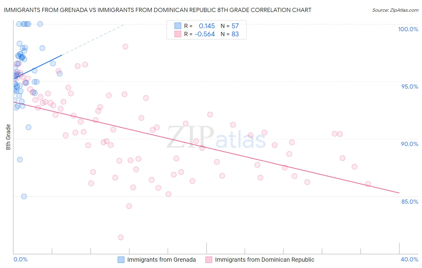 Immigrants from Grenada vs Immigrants from Dominican Republic 8th Grade Correlation Chart