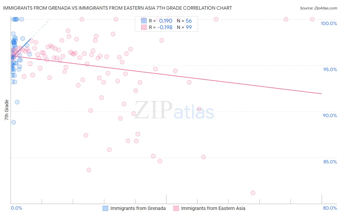 Immigrants from Grenada vs Immigrants from Eastern Asia 7th Grade Correlation Chart