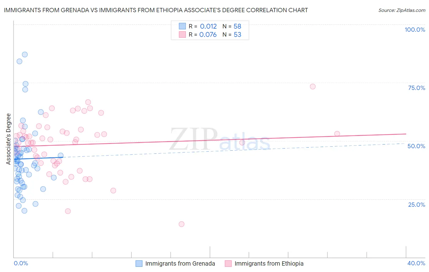 Immigrants from Grenada vs Immigrants from Ethiopia Associate's Degree Correlation Chart
